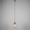 The vintage 70s hanging lamp is a lovely circular glass light with a metal copper finish. It’s a retro-styled contemporary design! Because the light source will be visible through the glass sphere, choose a decorative filament light source. It looks great in the foyer or the dining room.