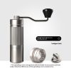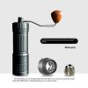 This portable hand grinder boasts durable stainless steel “ghost tooth” burrs for consistent, cafe-quality grinds. Its magnetic assembly simplifies cleaning and ensures secure operation. Ideal for travel or home use, it delivers precise control over grind size, unlocking the full flavor potential of your coffee beans.