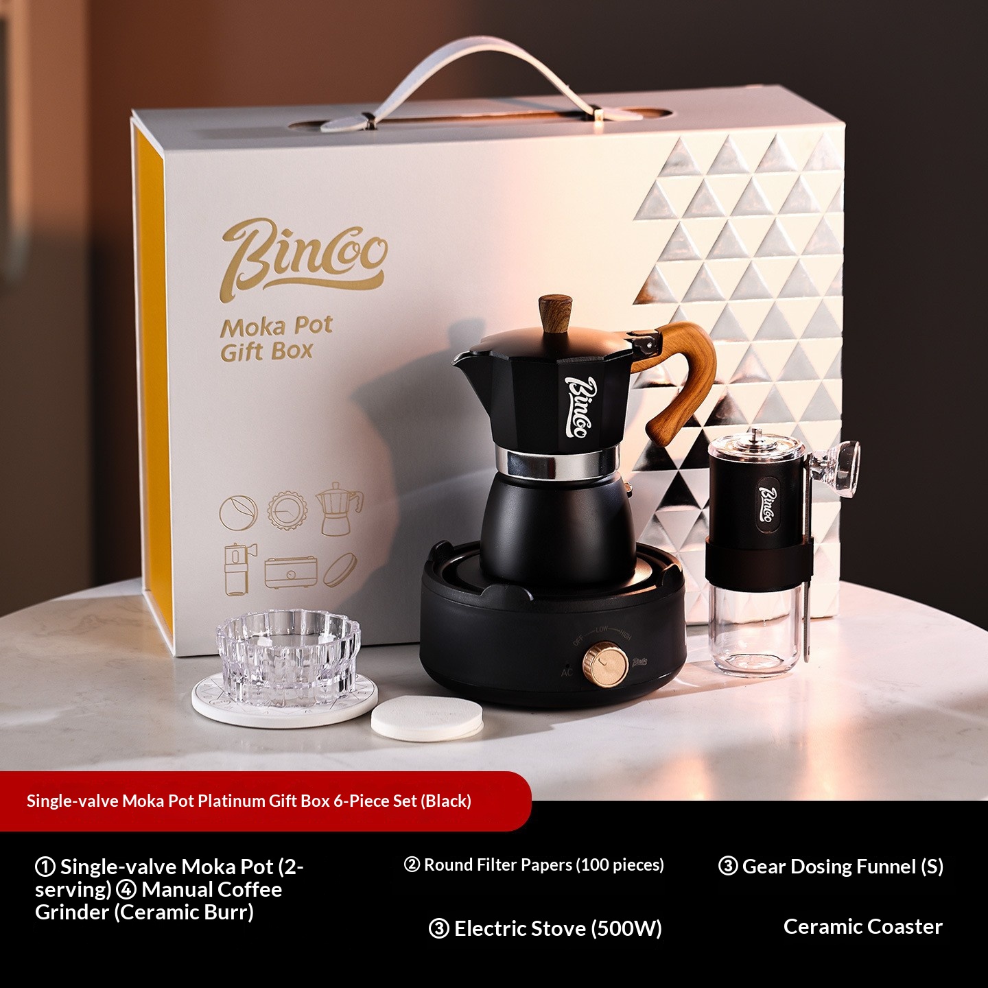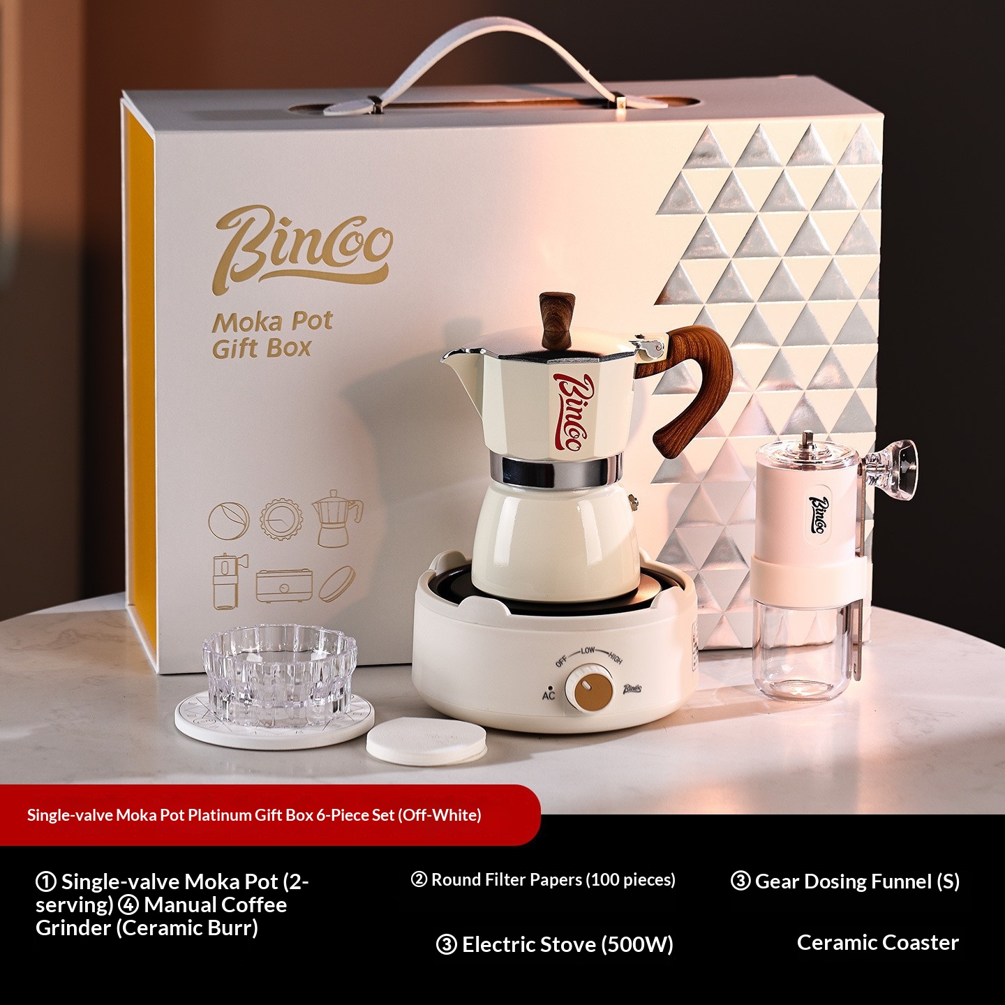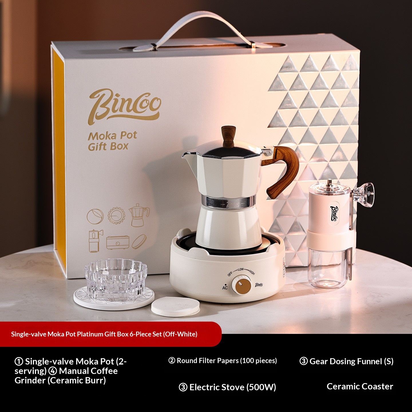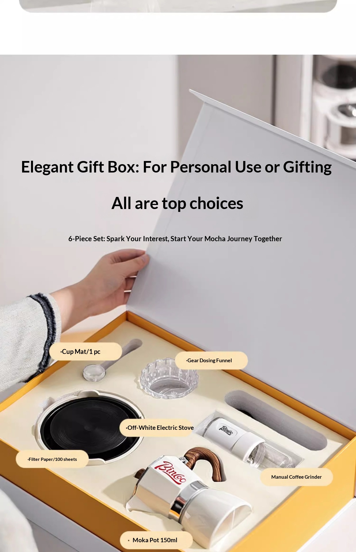 | Color | White moka pot 6-piece set [platinum gift box], Greeting card/gift bag], Green moka pot 6-piece set [platinum gift box], Greeting card/gift bag], Off-white moka pot 6-piece set [platinum gift box, Greeting card/gift bag], Red moka pot 6-piece set [platinum gift box], Greeting card/gift bag], Black moka pot 6-piece set [platinum gift box], Greeting card/gift bag], Creamy white moka pot 6-piece set [portable style platinum gift box], Greeting card], White moka pot 6-piece set [hand-carry style platinum gift box], Greeting card], Red moka pot 6-piece set [portable style platinum gift box], Greeting card], Black moka pot 6-piece set [portable style platinum gift box], Greeting card], White moka pot 3-piece set [printed gift box], Greeting card/free handbag], Red moka pot 3-piece set [printed gift box, Greeting card/free handbag], Black moka pot 3-piece set [printed gift box], Greeting card/free handbag] |
