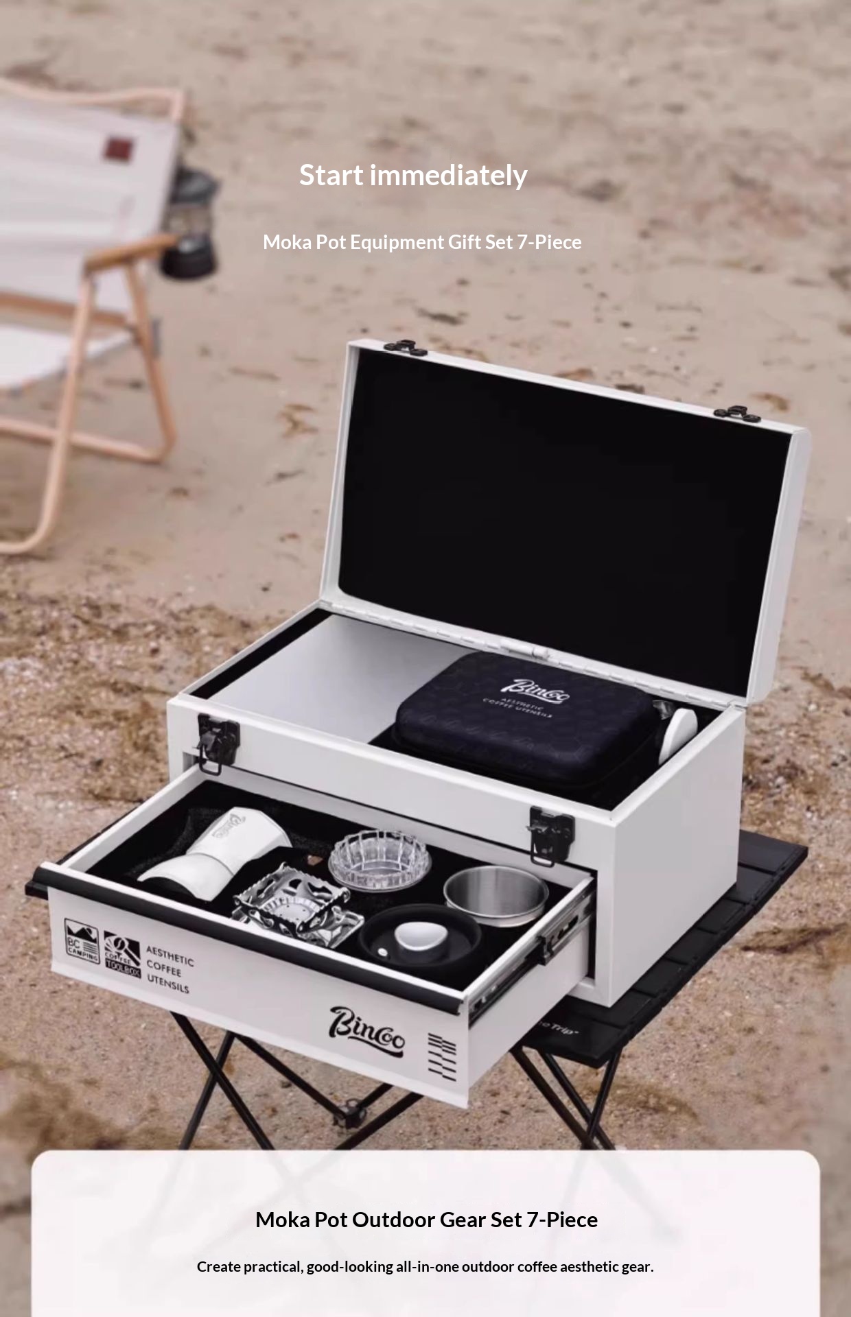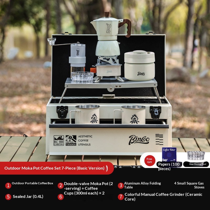 | Color | Outdoor coffee box 7-piece set-entry edition [ceramic grinding core grinder], Outdoor coffee box 7-piece set-advanced version [internal adjustable steel core grinder], Outdoor coffee box 7-piece set-luxury edition [external adjustable steel core grinder] |