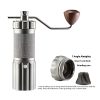 This manual coffee grinder features a unique ten-petal flower GC60 ghost tooth cone burr for exceptionally consistent and flavorful grinding. Its hand-powered operation offers precise control over grind size, perfect for various brewing methods. Compact and portable, it’s ideal for coffee enthusiasts seeking a superior, customizable grinding experience at home or on the go.